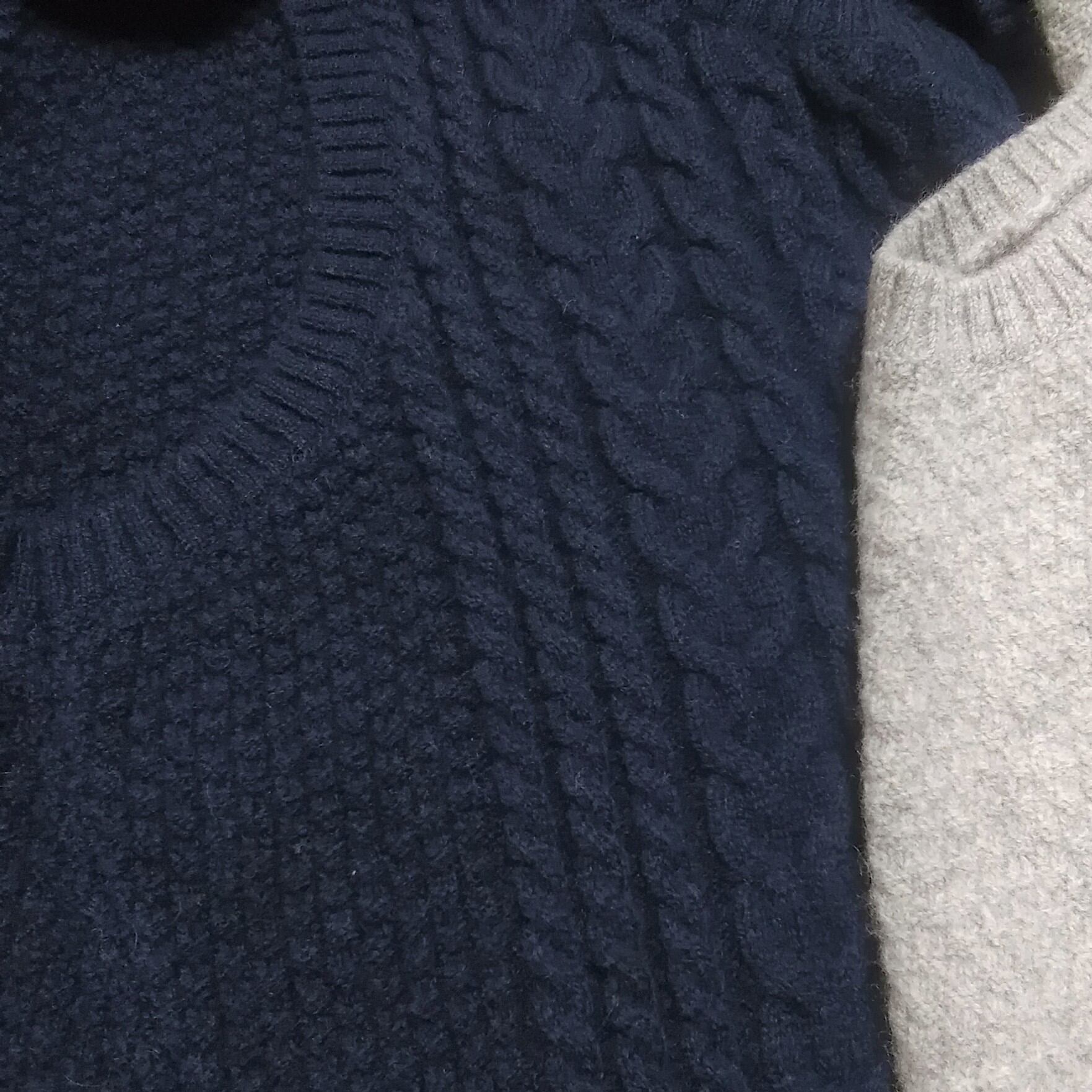長年にわたり継承され続けているような、定番的なケーブル編み使いのニットベストです。