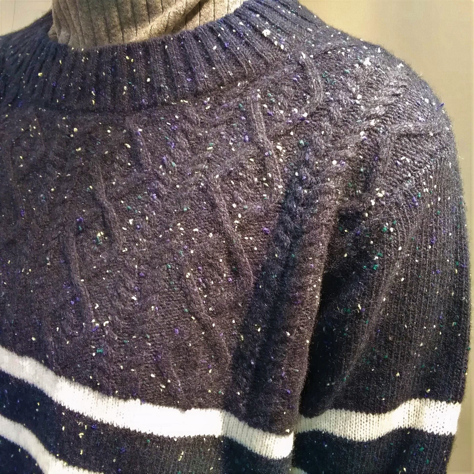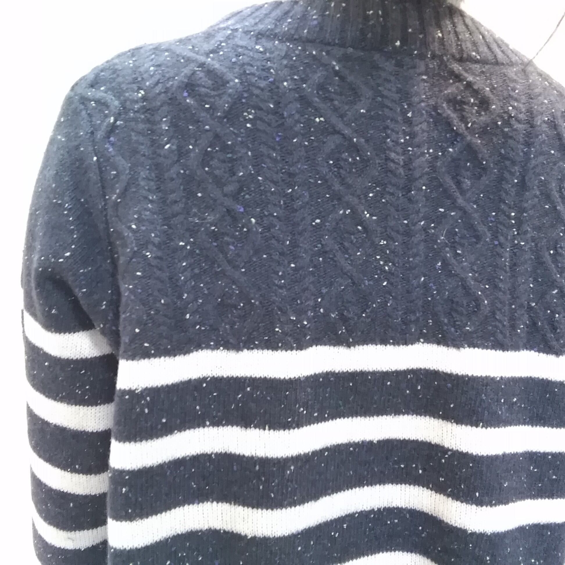 お買い得価格! ネップ糸 ケーブル編み ボーダーセーター 【送料無料】
