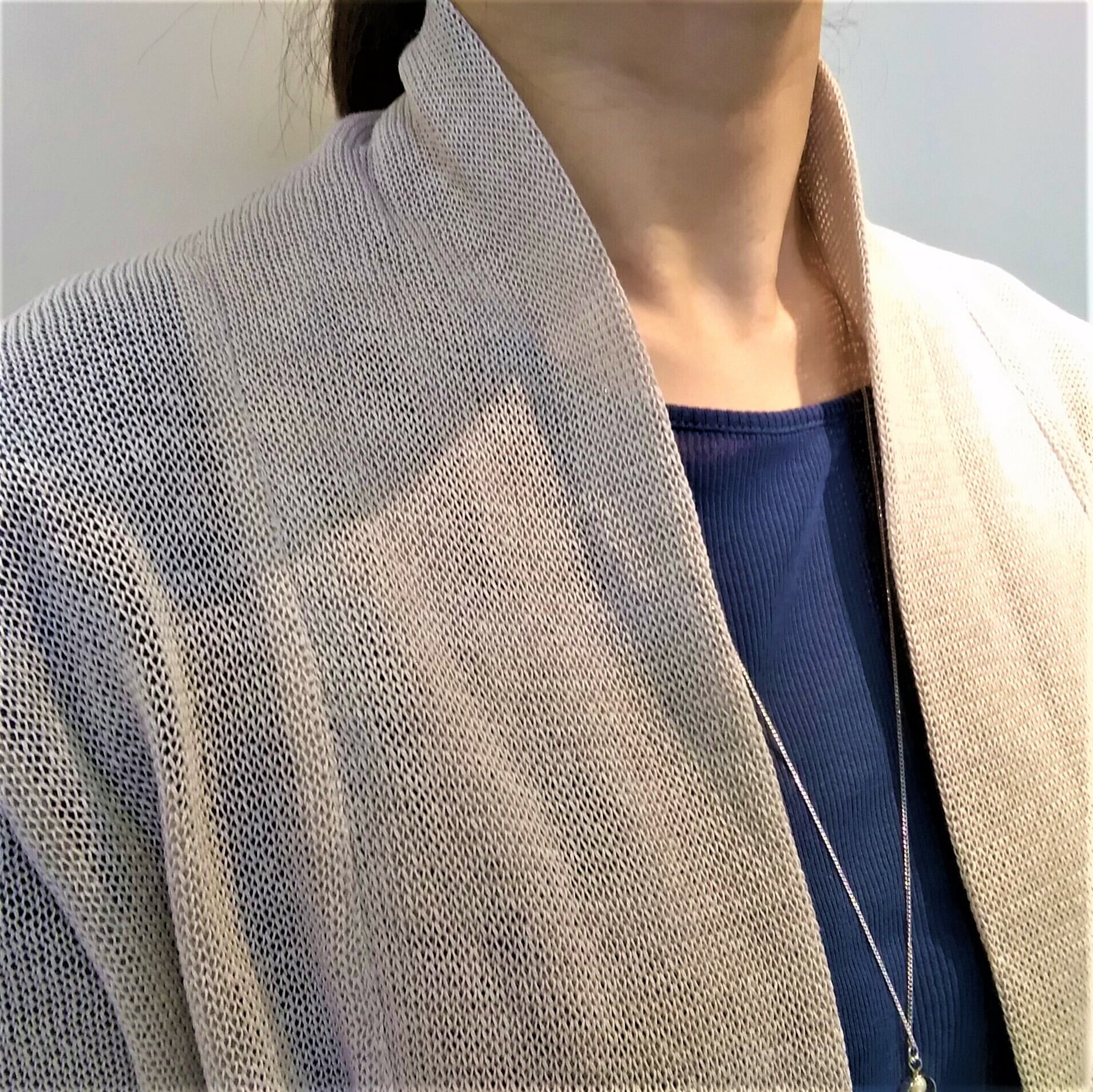 細身の幅で折り返したショールカラーがとっても素敵で、ジャケット感もある優れもののフェミニンなアイテムです!