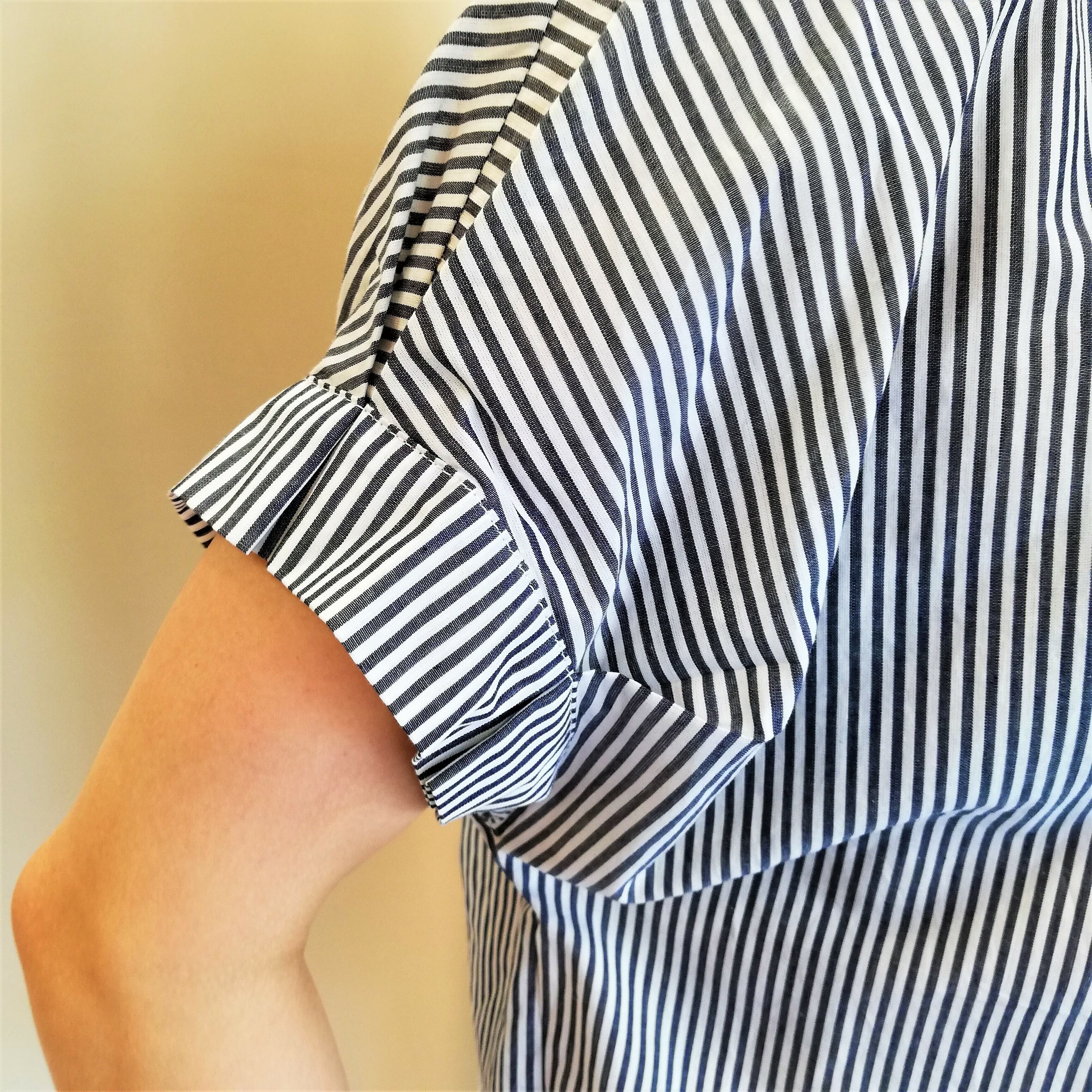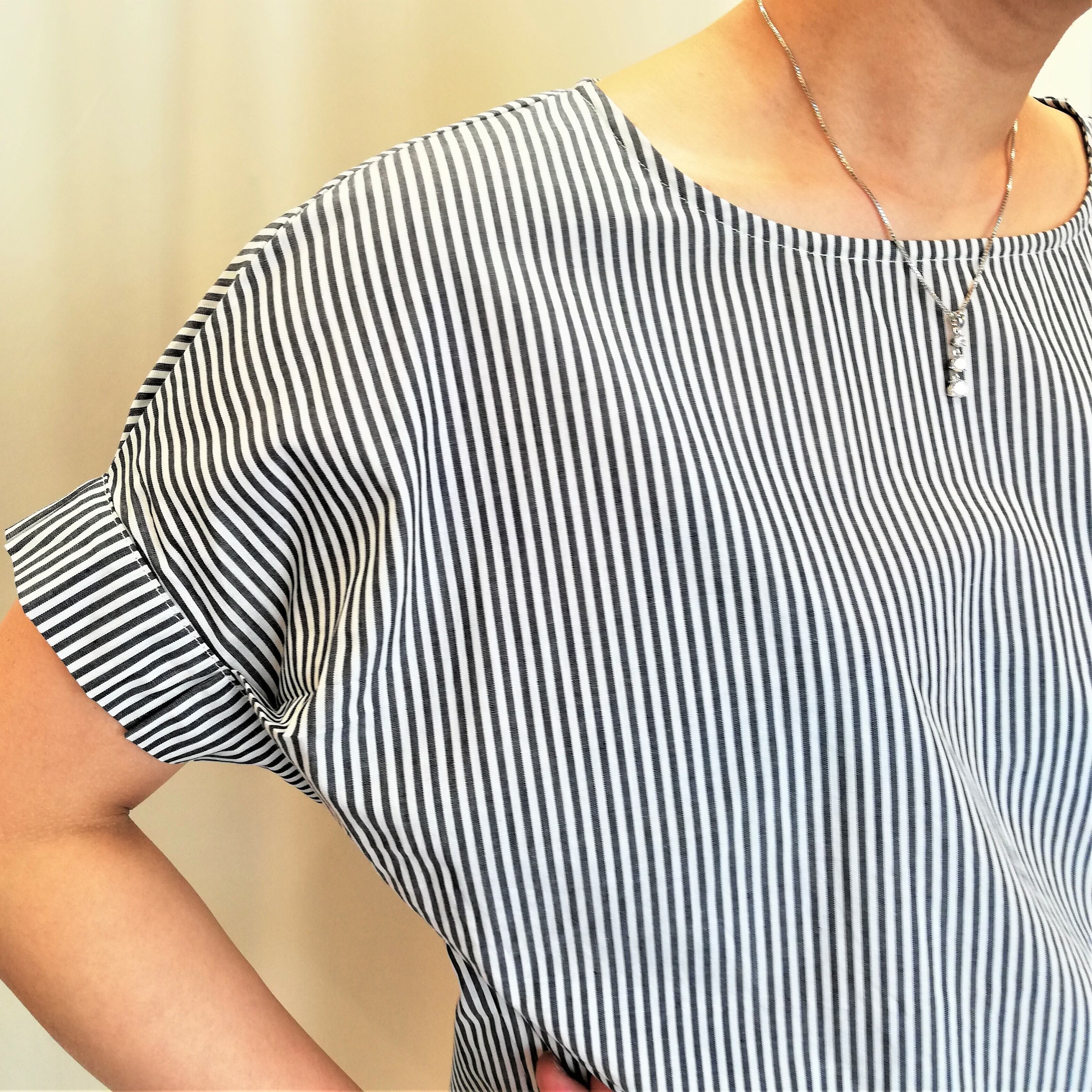 ボートネック風のクルーネックとネイビーのストライプがさわやかでスッキリ魅せ効果バツグン★★