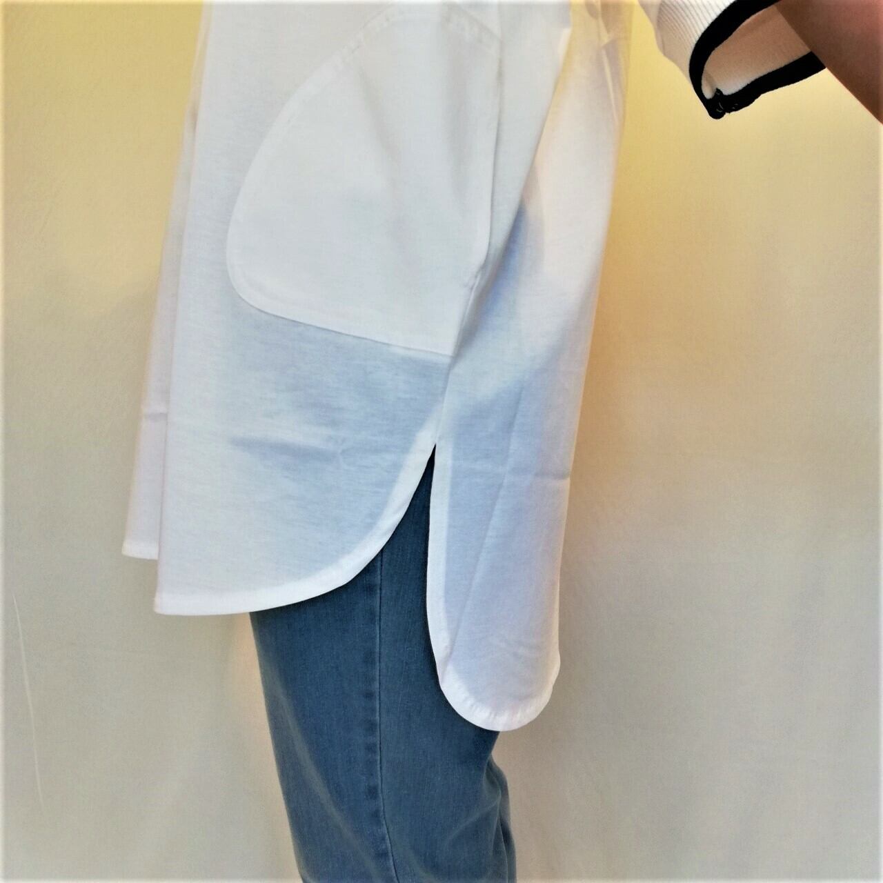 お買い得♡ フリーサイズ☆ ニット使い 6分袖ロングコットンブラウス 【 送料無料 】