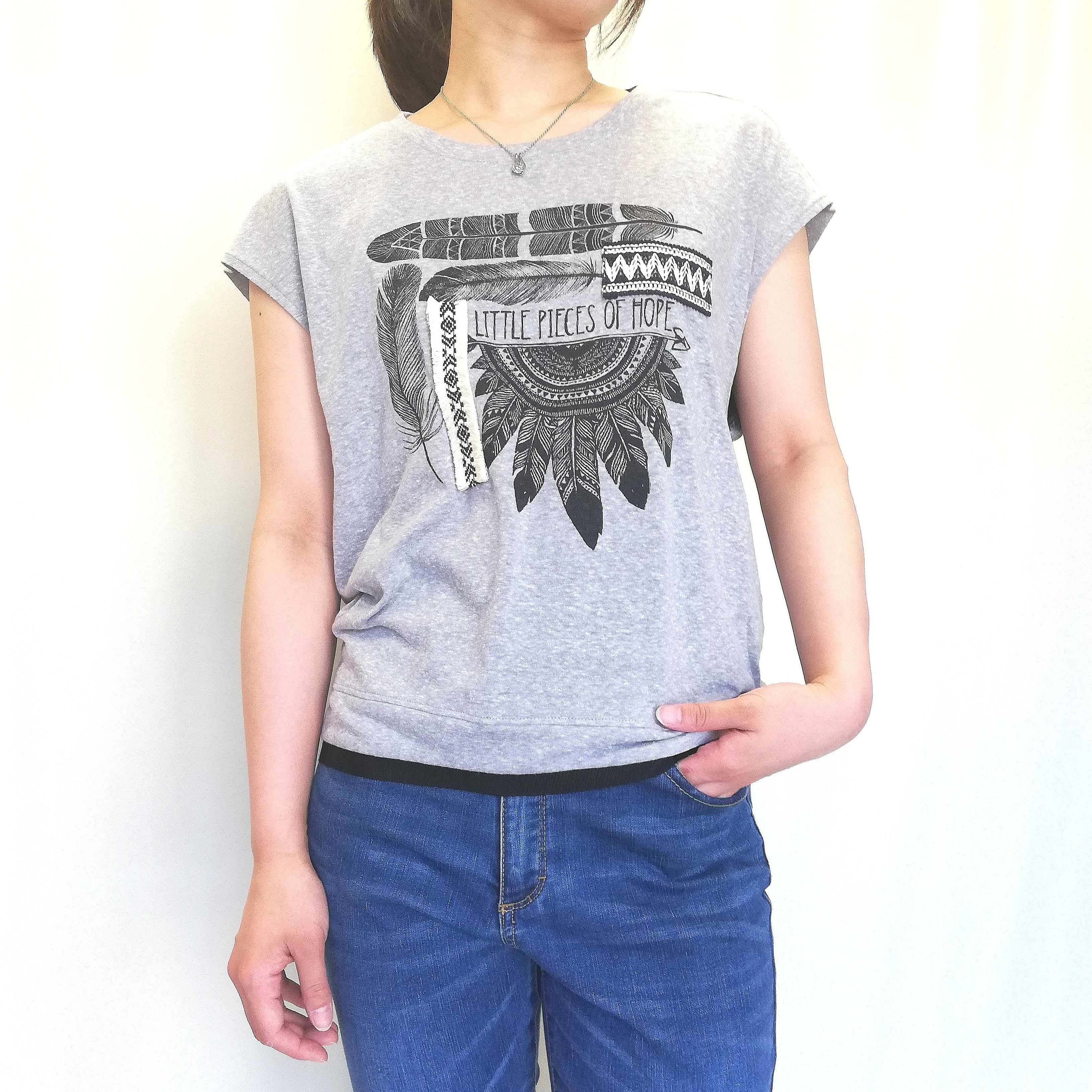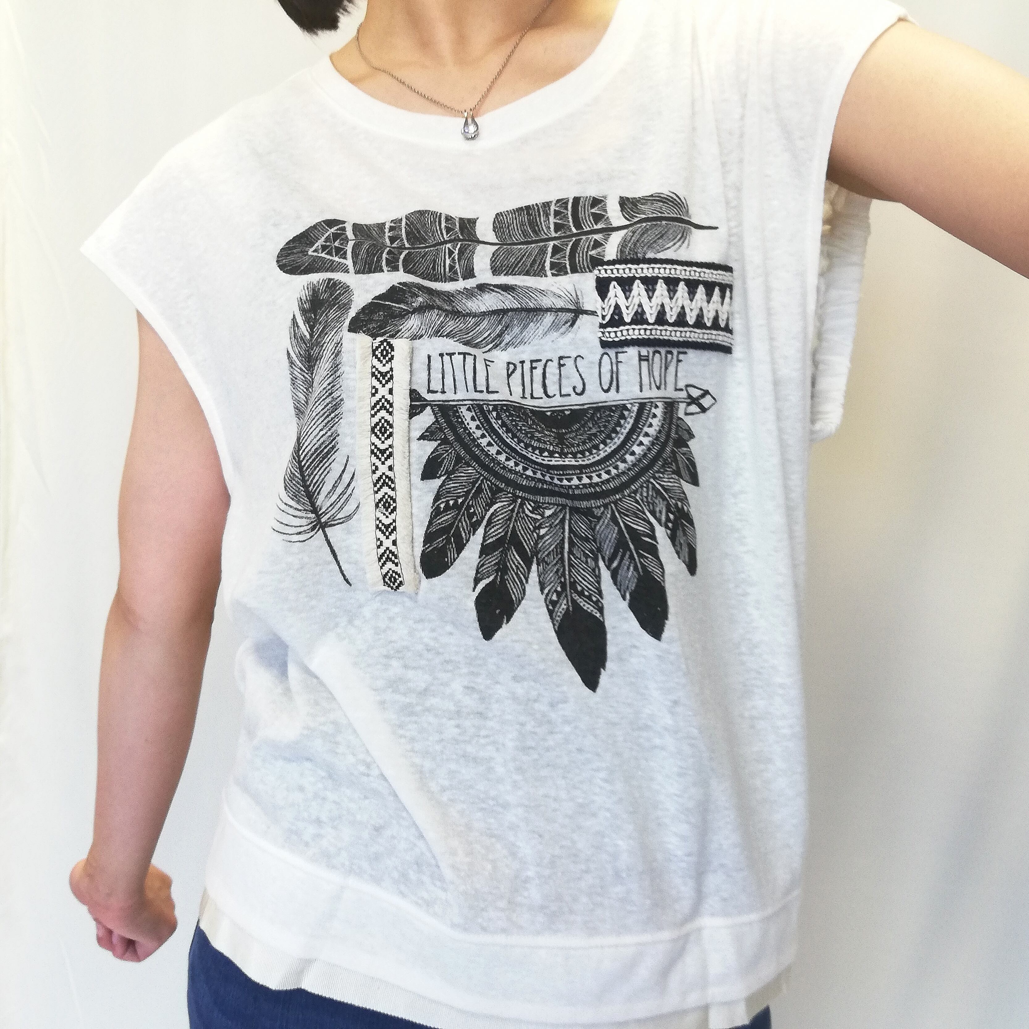 インディアン風プリントが可愛くて、二か所に立体的な貼り付け生地があり個性的です☆