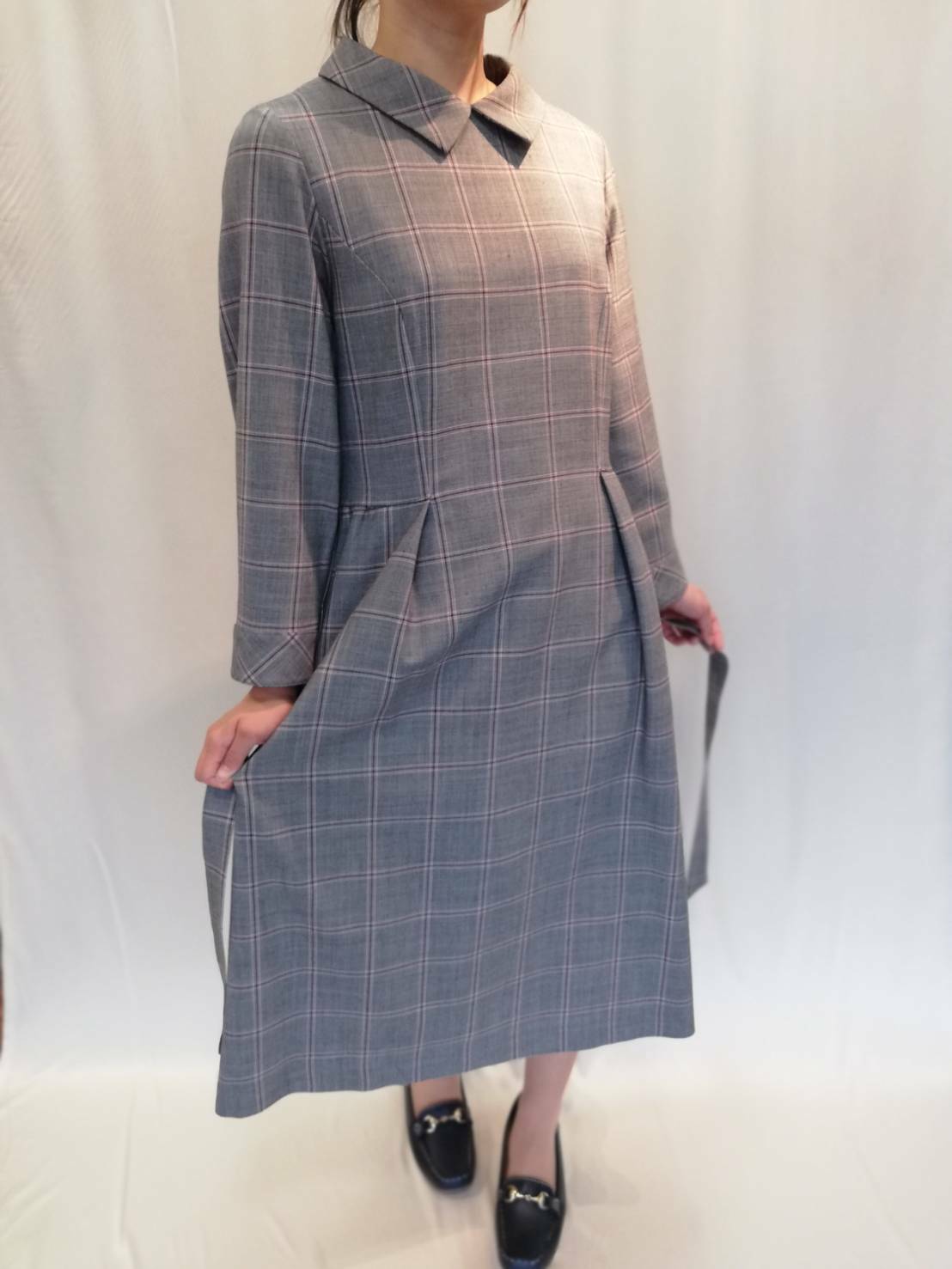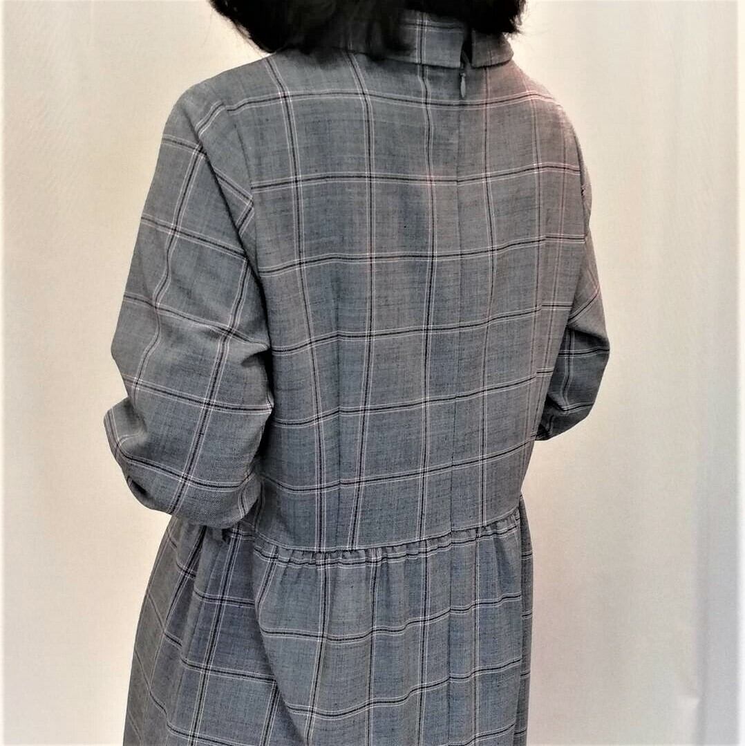 衿付き チェックAラインワンピース 【送料無料】