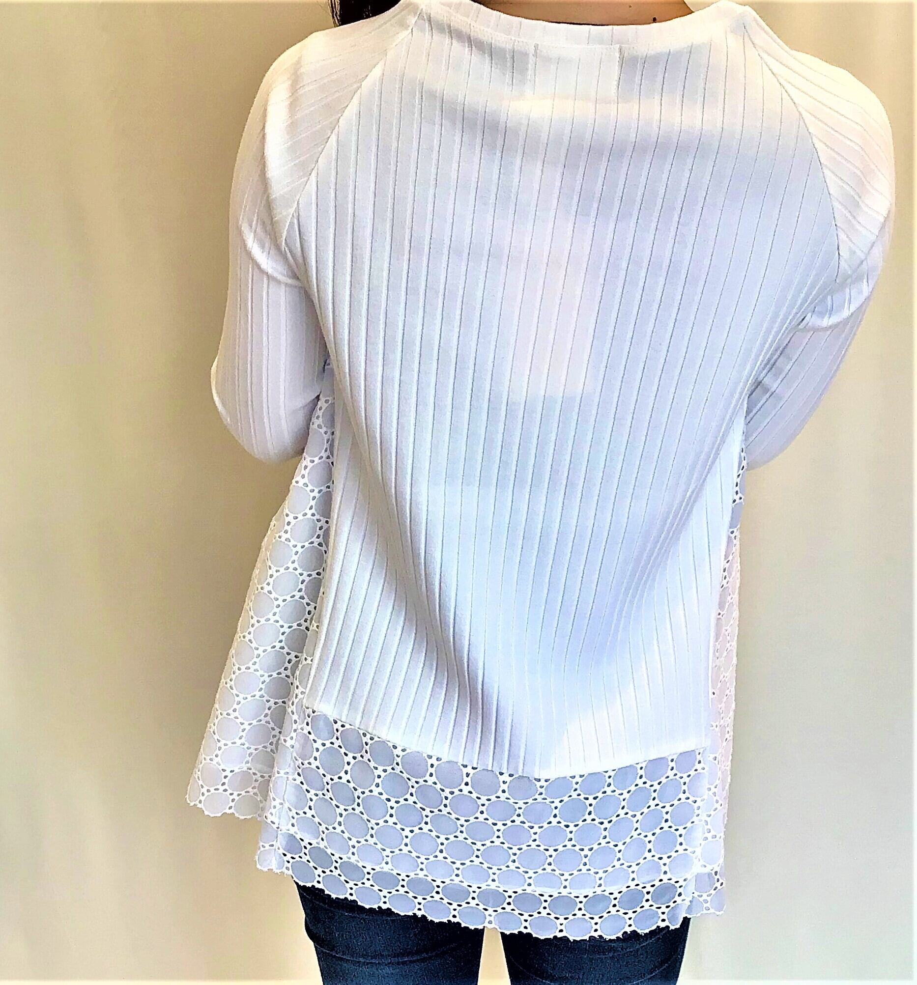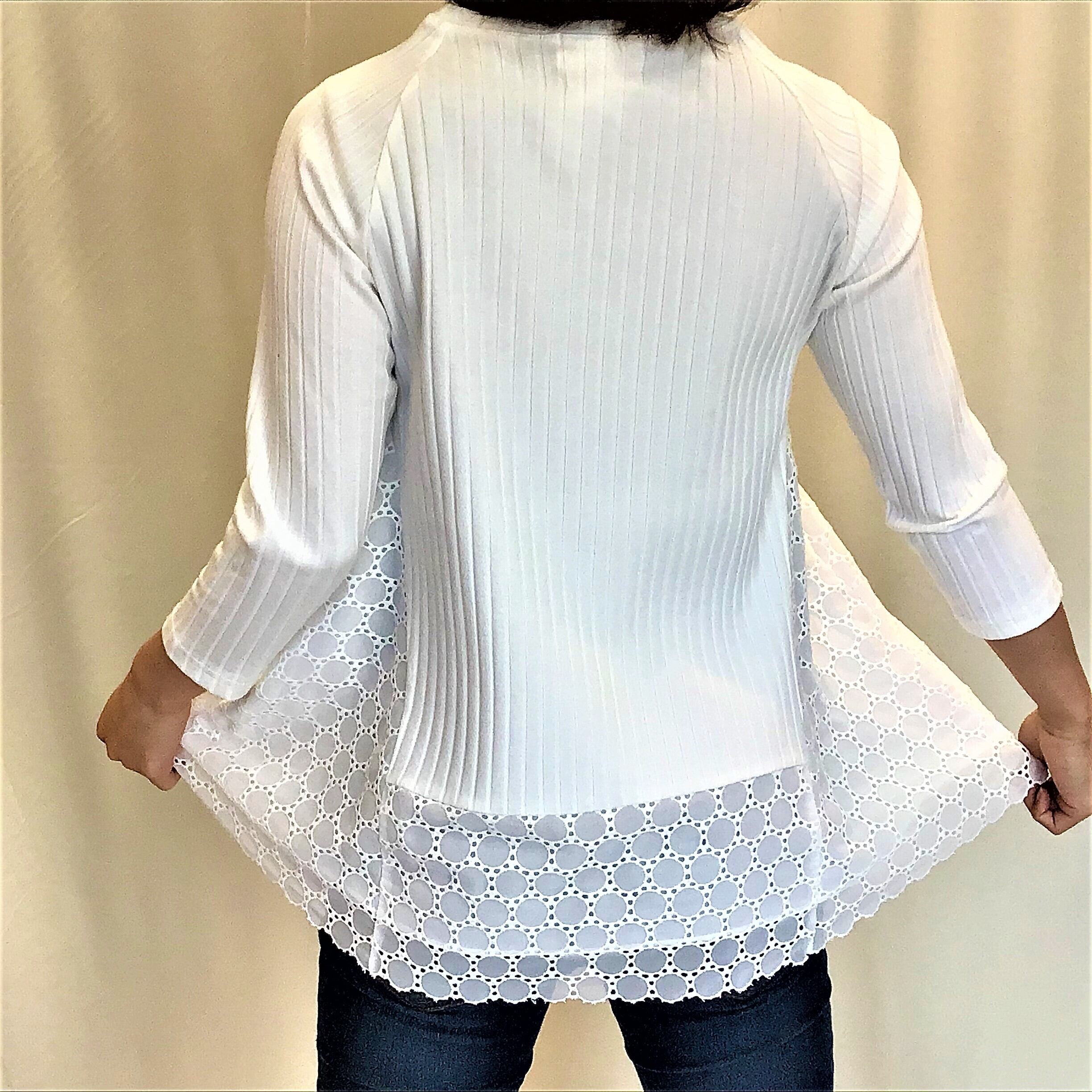 sale❣ レースも素敵❣ シャープなラインのカットソーブラウス 【送料無料】