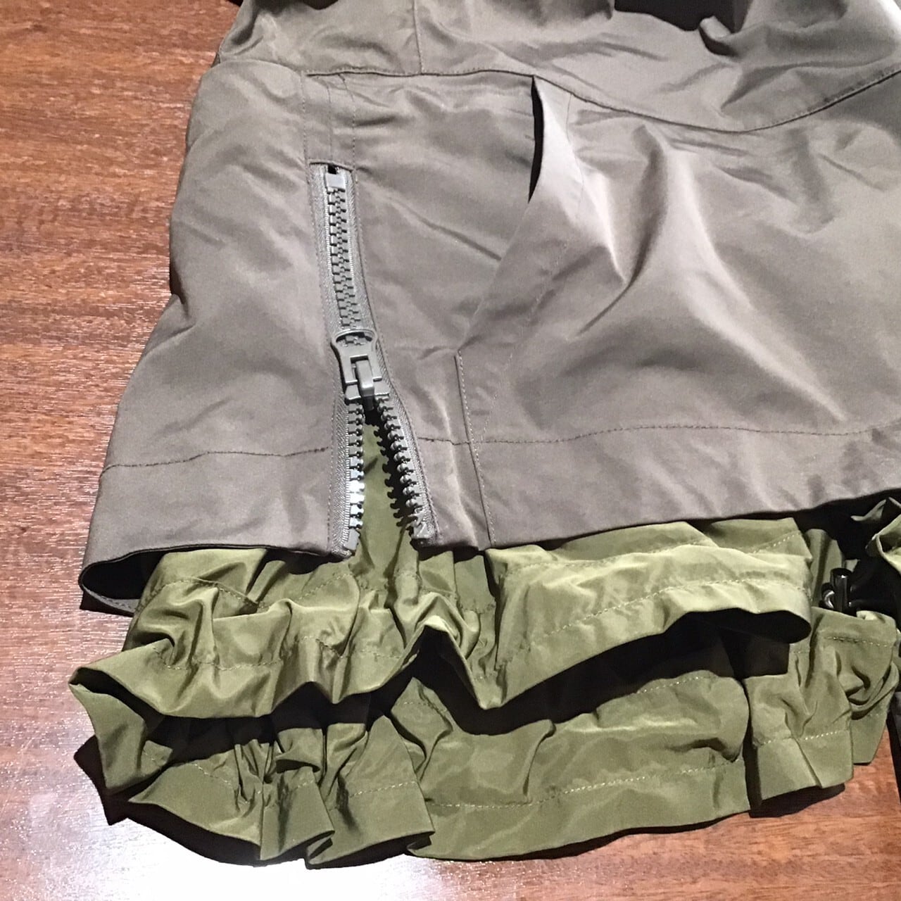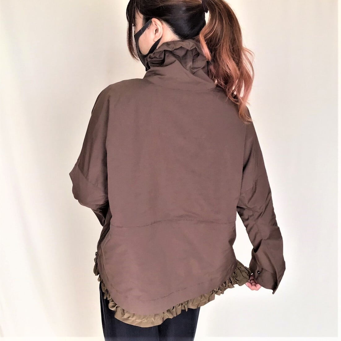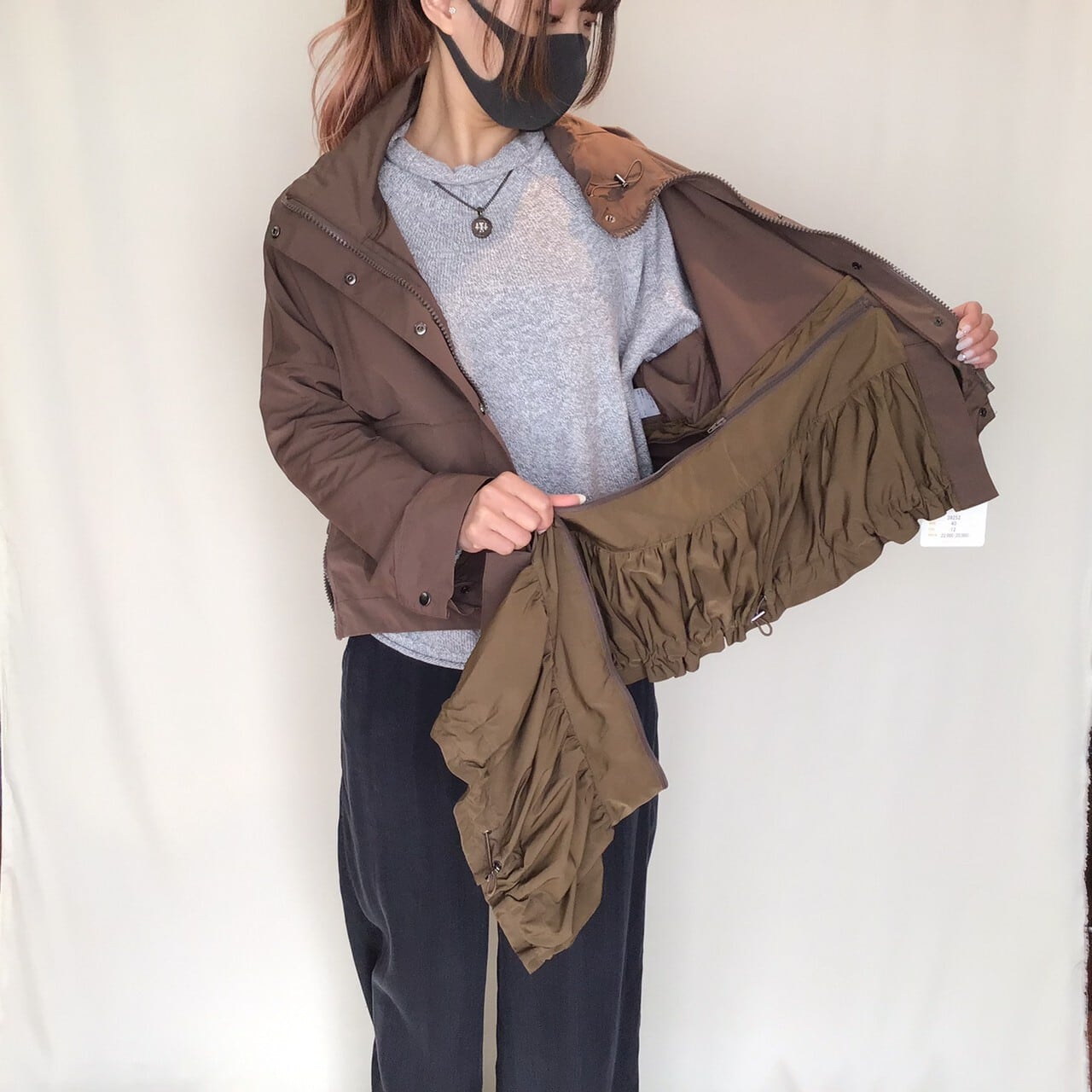 渋いカーキ色のフリルぺプラム部分が取り外せるので、シンプルなショートジャケットとしても活躍してくれますよ!!
